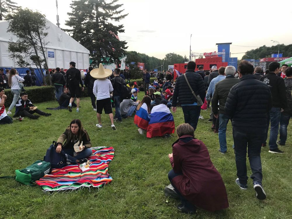 Проблема в том, что в Москве всего три  таких зоны - больше не стали открывать из соображений безопасности. Этого не хватает на то огромное количество людей, которое приехало на чемпионат. Больше всего болельщиков из Бразилии и Мексики.