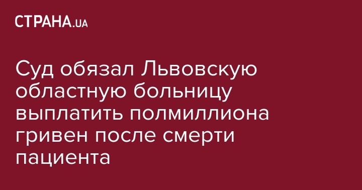 Лычаковский райсуд Львова обязал Львовскую областную больницу выплатить 500 тысяч гривен родственникам умершего пациента.