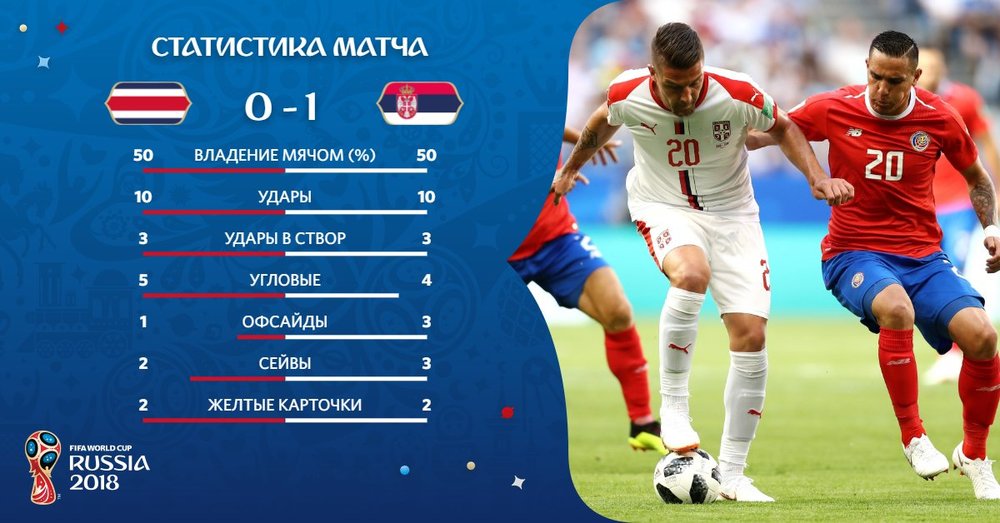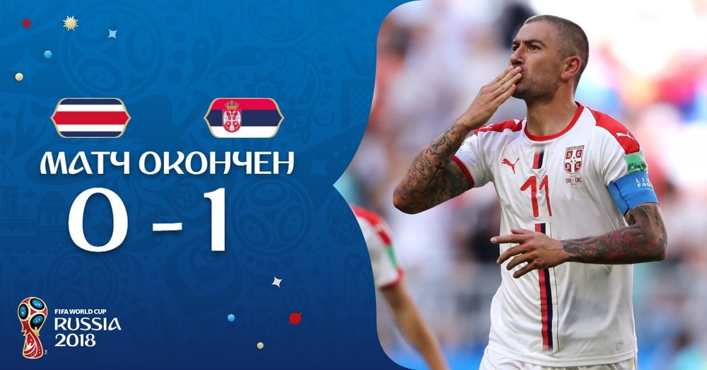16.58 Поединок Коста-Рика - Сербия завершился минимальной победой балканской команды.