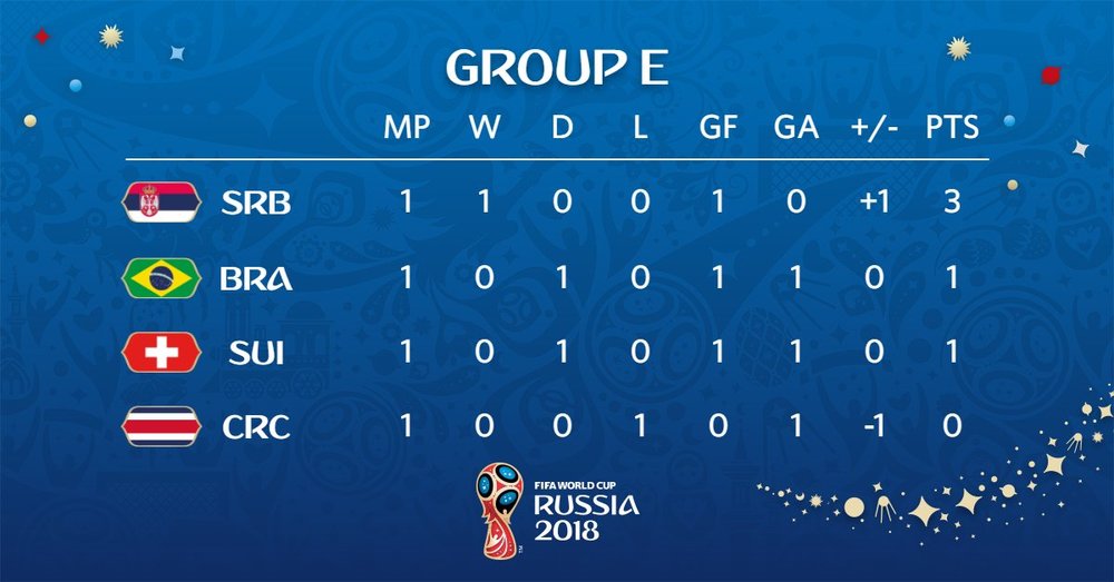 23.16 Положение команд в группе Е, где первыми внезапно оказались сербы.