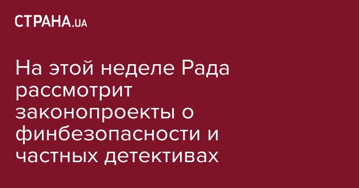 На пленарной неделе 19-22 июня в Верховной Раде планируют рассмотреть законопроекты о Нацбюро финбезопасности, частной детективной деятельности и назначении судей Конституционного суда. Об этом сообщается на сайте парламента.
