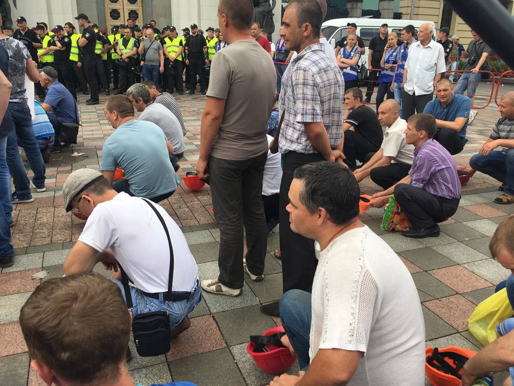 14:27 Некторые шахтеры остались под Радой и начали стучать касками, скандируя "Зарплату!".