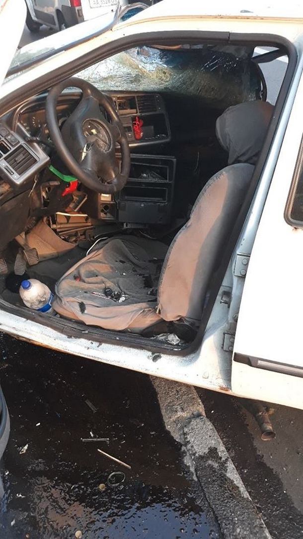 Автомобиль превратился в груду металлолома, в то время как водитель не пострадал.