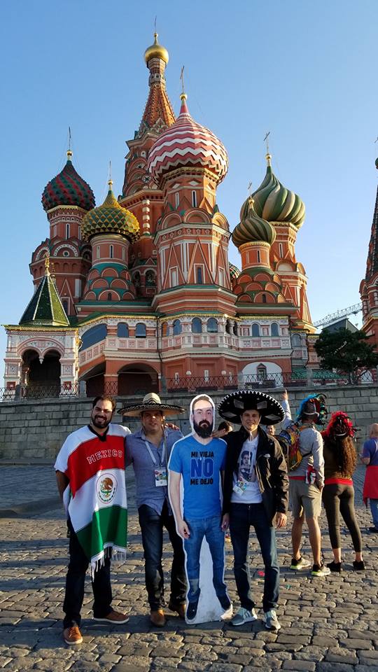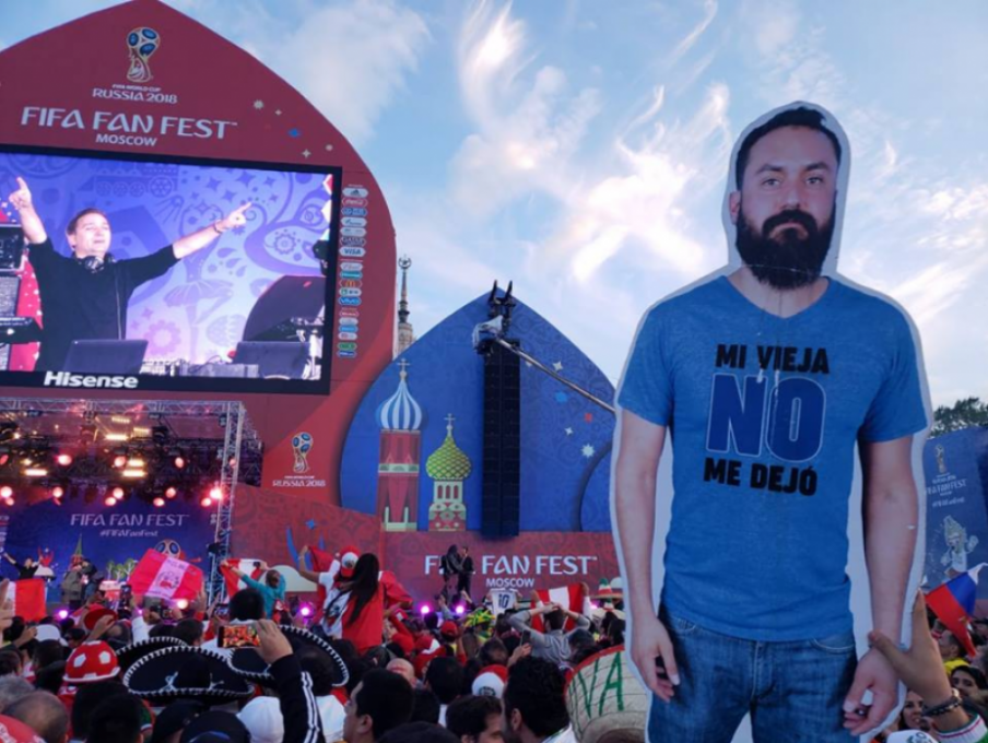 Друзья вырезали картонное изображение футбольного фаната из Мексики в футболке с надписью "Моя старуха меня не отпустила" и взяли его с собой на Мундиаль.