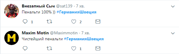 13 Повтор для болельщиков показал чистую подножку шведу со стороны немецкого защитника. Но судья даже не пошел смотреть эпизод и ассистенты также, очевидно, молчат.