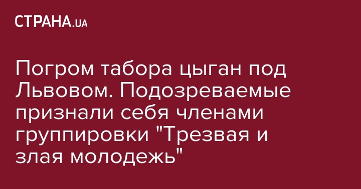 Подозреваемые в погроме цыганского табора под Львовом, который привел к гибели человека, признали себя членами группировки "Трезвая и злая молодежь". Об этом сообщает "Громадське".
