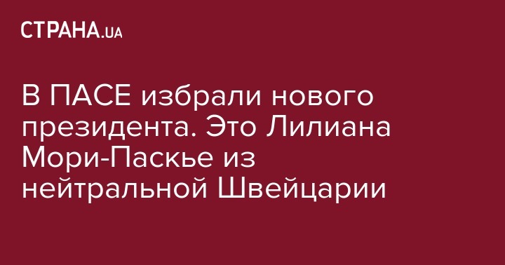 Председателем Парламентской ассамблеи Совета Европы (ПАСЕ) была избрана гражданка Швейцарии Лилиана Мори-Паскье. Об этом говорится в сообщении ПАСЕ.