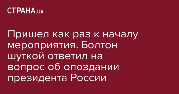 Помощник президента США по национальной безопасности Джон Болтон не стал прямо отвечать на вопрос об опоздании президента России Владимира Путина на встречу с ним и решил отшутиться.