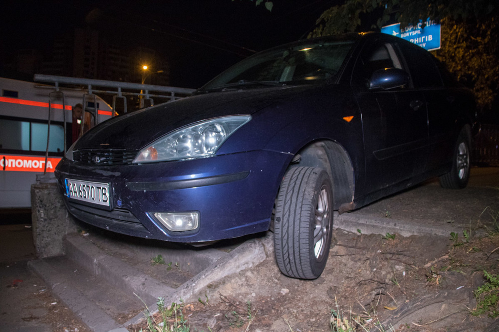 Сегодня, 29 июня, в Соломенском районе Киева водитель на Ford, выезжая со двора, зацепил две припаркованные машины и пытался скрыться, но повис на ступеньках тротуара.