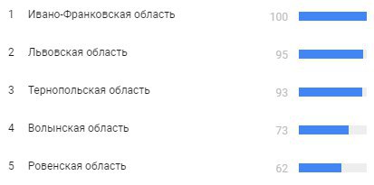 Больше всего таких запросов было из Ивано-Франковской области. Вторая  по запросам - Львовская область, затем Тернопольская, Волынская  и Ровенская.