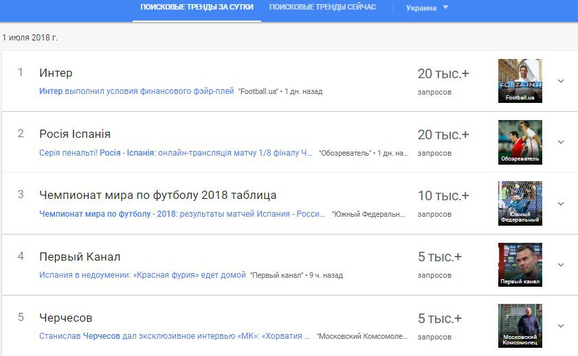 По данным поисковика, в лидеры вырвался украиноязычный запрос "Росія Іспанія".