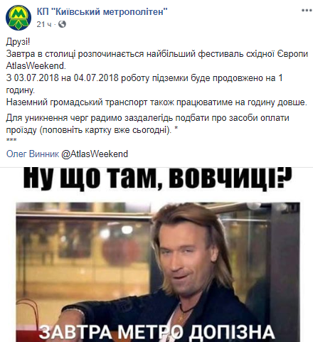 Анонс киевская подземка иллюстрировала картинкой с хедлайнером первого дня.