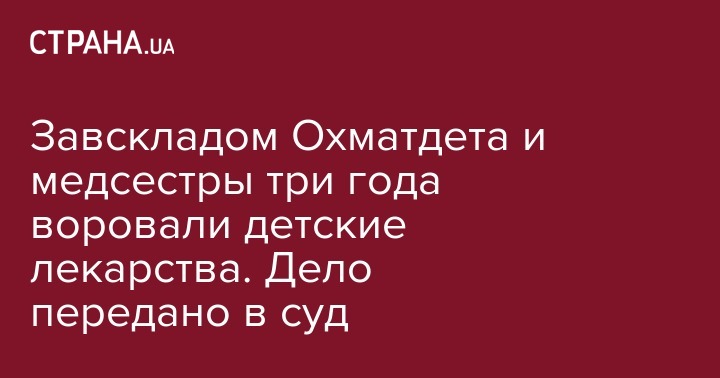 Ранее "Страна" писала о том, что медсестер "Охматдета" подозревают в краже лекарств на 8 млн гривен.