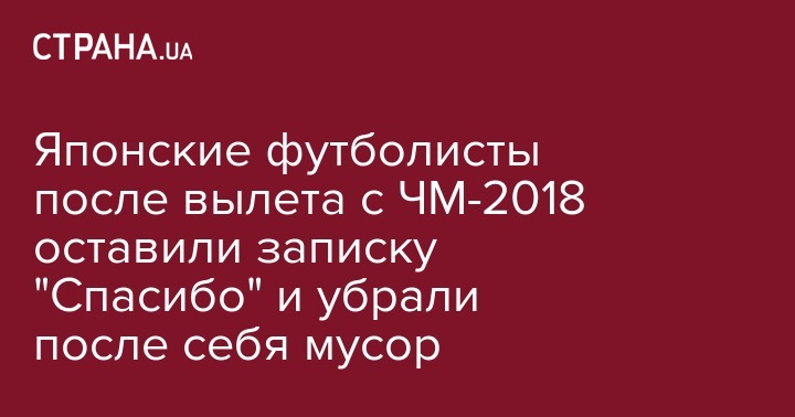 Японские футболисты навели порядок в раздевалке и оставили записку с российским "Спасибо" после поражения на ЧМ-2018.