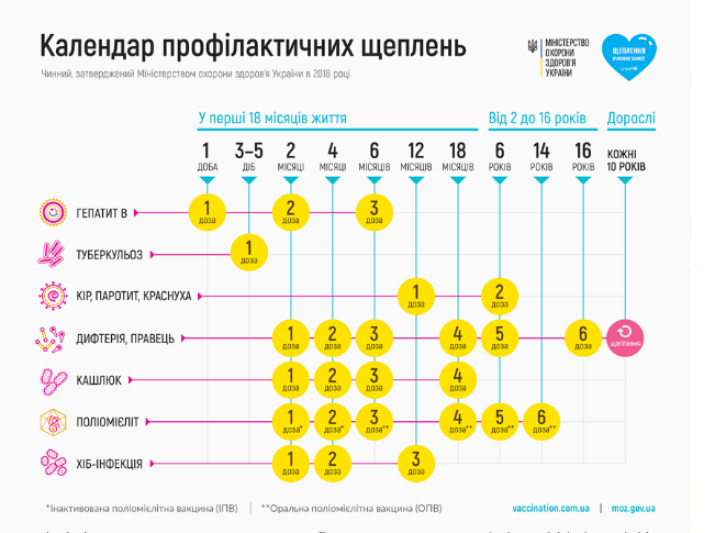 Опубликован новый календарь профилактических прививок маленьких украинцев