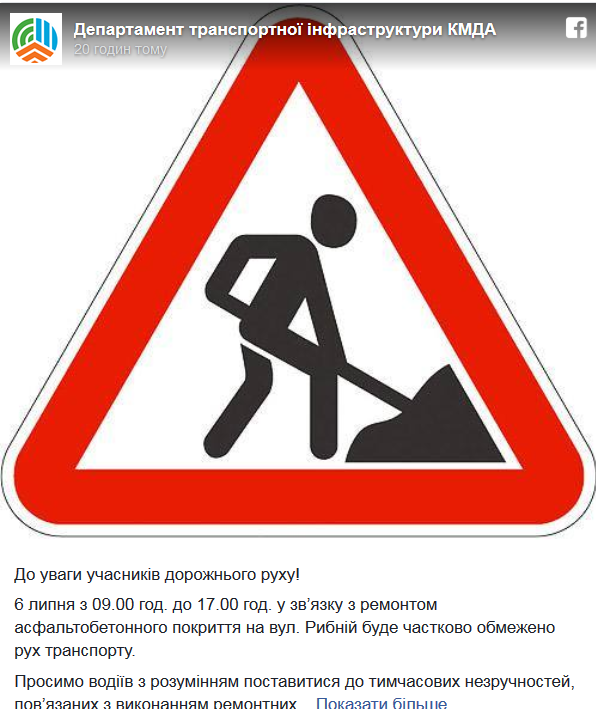 В пятницу, 6 июля, в столице Украины частично ограничат движение автомобильного транспорта по улице Рыбной.