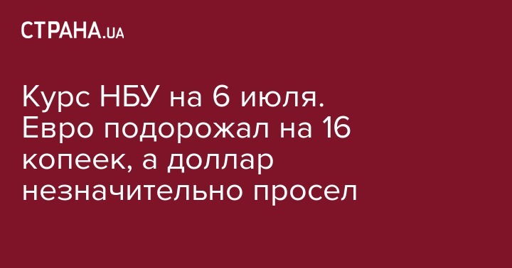 Курс НБУ на 6 июля. Евро подорожал на 16 копеек, а доллар незначительно просел