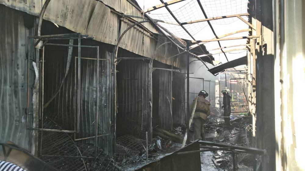 Сообщение о пожаре на рынке поступило на пульт "101" 6 июля в 6:23. По указанному адресу были направлены дежурные отделения 6-го Государственного пожарно-спасательного отряда.