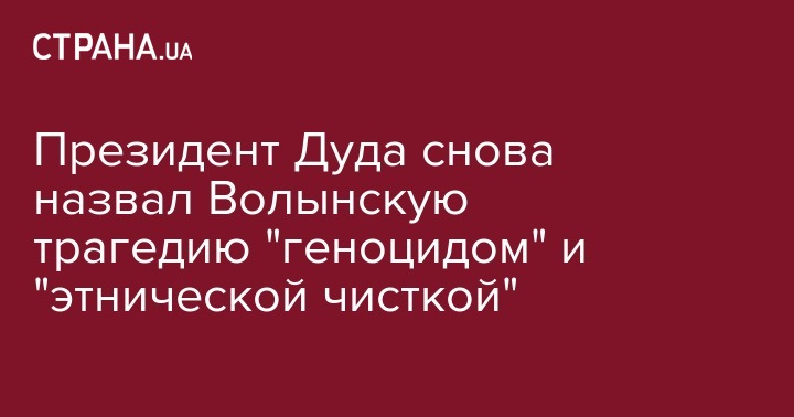 "В Польше это будет Национальный день памяти жертв геноцида, совершенного на Волыни против поляков украинскими националистами", - сказал польский президент.