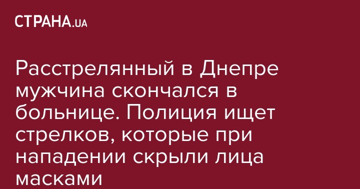 Расстрелянный в Днепре мужчина скончался в больнице. Полиция ищет стрелков, которые при нападении скрыли лица масками