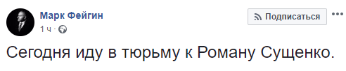 Общественный защитник осужденного в России по обвинению в шпионаже украинского журналиста Романа Сущенко Марк Фейгин сегодня. 11 июля, посетит его в тюрьме. Об этом Фейгин сообщил в Facebook.
