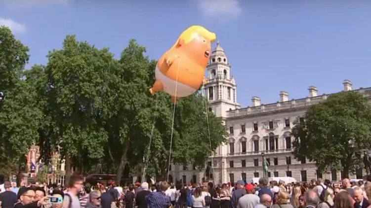 Активисты, протестующие против визита президента США Дональда Трампа в Великобританию, запустили в воздух над Лондоном гигантский надувной шар.