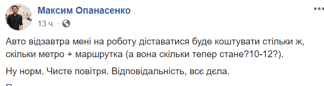 "Авто с завтрашнего дня мне на работу добираться будет стоить столько же, сколько метро + маршрутка (а она сколько теперь будет? 10-12?).