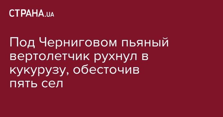 В Боровичском районе Черниговской области пьяный пилот вертолета винтом задел линию электропередач при совершении аварийной посадки. Об этом сообщает пресс-служба полиции Черниговской области.