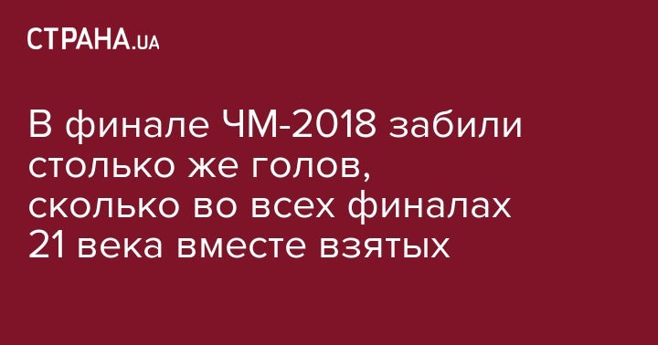 Сборные Франции и Хорватии забили в финале ЧМ-2018 на двоих шесть мячей. Это столько же, сколько было забито на чемпионатах мира с 2002 по 2014 год вместе взятых.