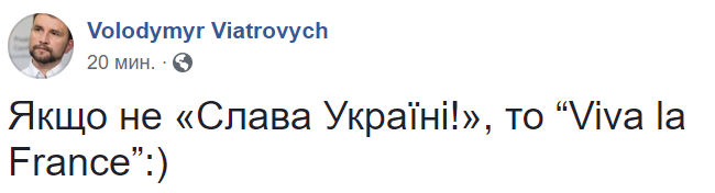 "Если не "Слава Украине!", То "Viva la France"", - пишет глава института нацпамяти Владимир Вятрович.
