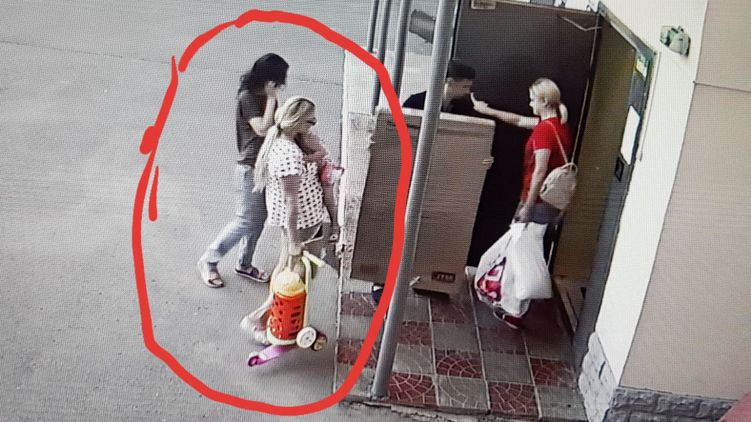 Фото с камер наблюдения: Виктория с дочкой на руках заходит в подъезд