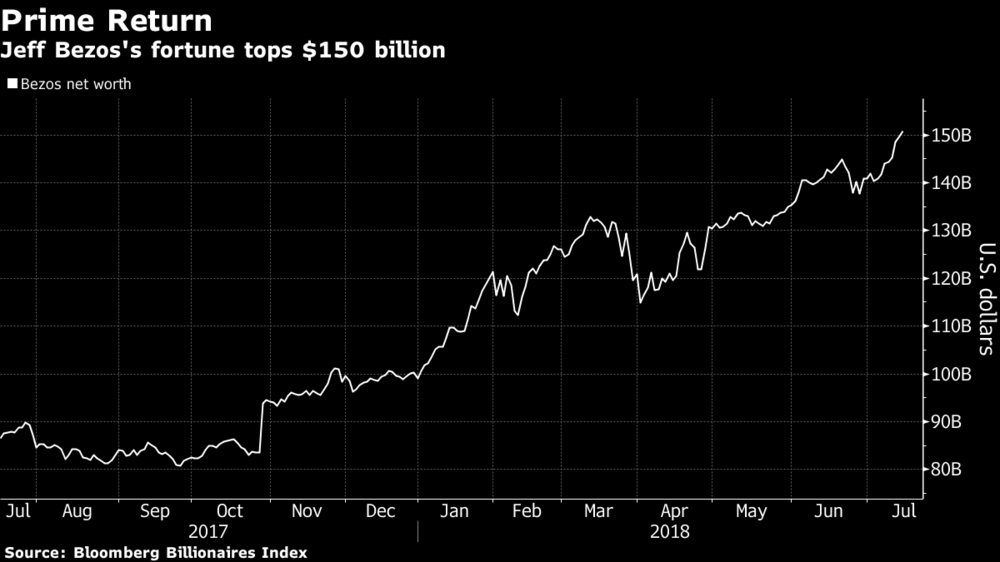 Стоимость состояния основателя компании Amazon Джеффа Безоса 16 июля выросла до 150 миллиардов долларов. Это позволило ему стать самым богатым человеком в истории.