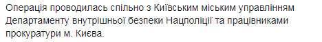 Операция проводилась совместно с Киевским управлением Департамента внутренней безопасности Нацполиции и работниками прокуратуры Киева.