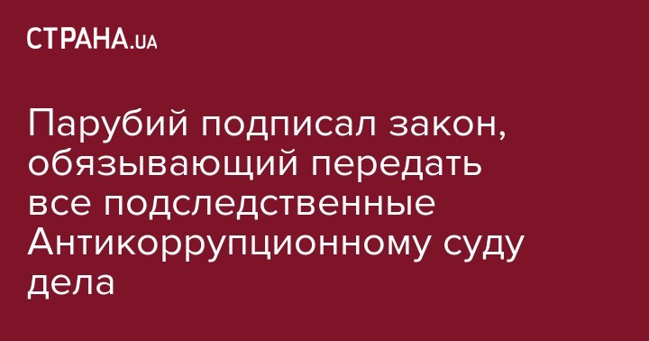 Парубий подписал закон, обязывающий передать все подследственные Антикоррупционному суду дела