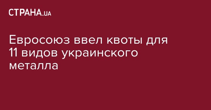 Евросоюз ввел тарифные квоты для 11 видов металлопродукции из Украины. Об этом говорится в сообщении пресс-службы Министерства экономического развития и торговли Украины.