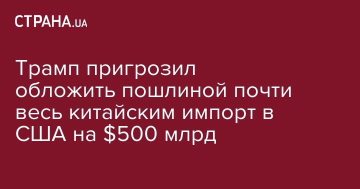 Трамп пригрозил обложить пошлиной почти весь китайским импорт в США на $500 млрд