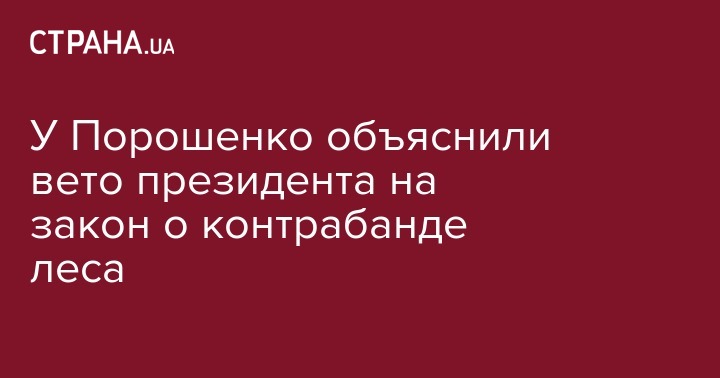 Как сообщалось, Порошенко ветировал закон, который предусматривает ограничение годового объема заготовки необработанных лесоматериалов 25 млн кубометров на время действия моратория на экспорт необработанных лесоматериалов и введение уголовной ответственности за контрабанду леса.
