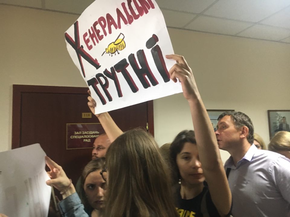 Это заседание в здании академии прокуратуры в Киеве - последствие весеннего скандала с Холодницким. Тогда, при содействии НАБУ в его кабинете установили "жучок". По мотивам записей, на которых Холодницкий вел довольно сомнительные беседы, генпрокурор и директор НАБУ подали жалобы в прокурорскую КДК.