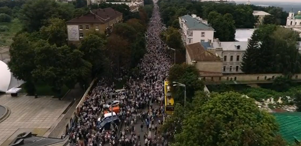 13:51 Голова шествия уже приближается к Лавре, а хвост - еще на Владимирской горке.