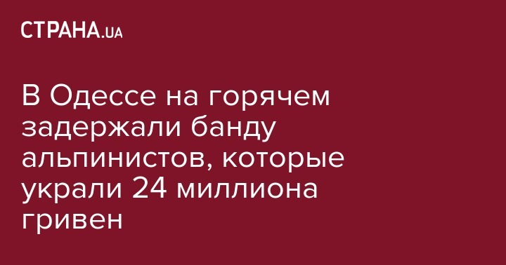 Правоохранители задержали в Одессе группу воров-альпинистов, похитивших 24 миллиона гривень. Об этом на своей странице в Facebook сообщил начальник Главного управления Нацполиции в Одесской области Дмитрий Головин.