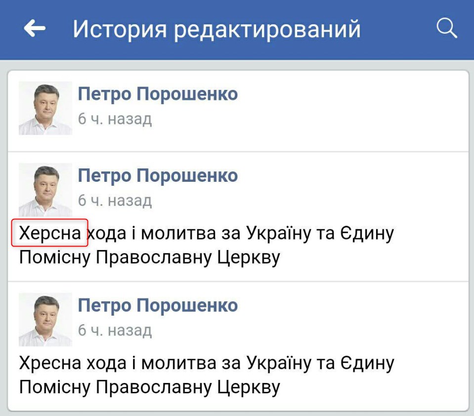 Когда президент шагал во главе хода, на его странице в Facebook включилась прямая трансляция. Помощники президента озаглавили ее с двусмысленной ошибкой, написав "Херсна хода", вместо "Хресна".