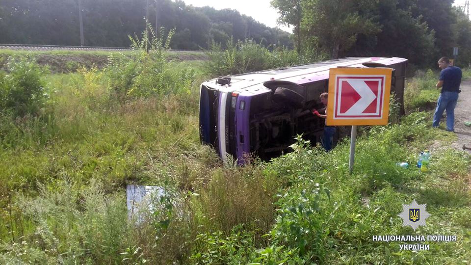 Под Харьковом перевернулся автобус с двумя десятками пасажиров