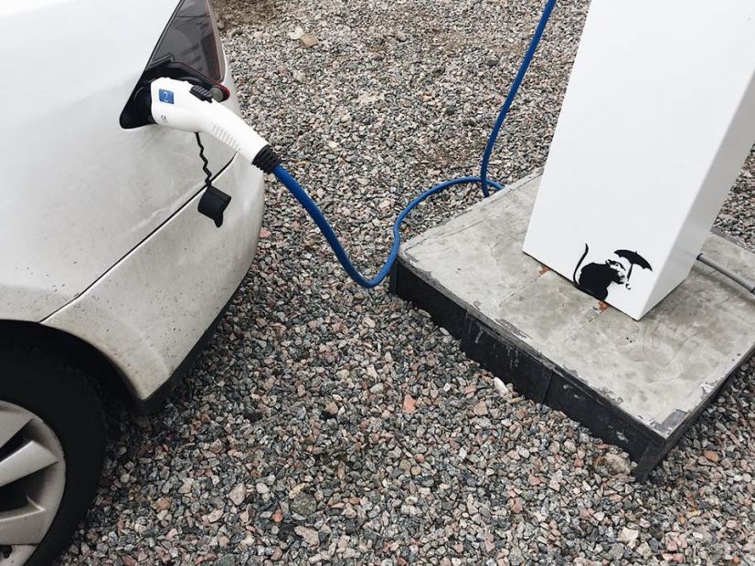 Изображение "двуглавого" грифа с топливо-раздаточными пистолетами вместо голов обозначили тэгом Бэнкси, хотя сам художник крайне редко оставляет свою подпись. Также на территории заправки нарисовали мышь, которая считается традиционным образом для работ Бэнкси.