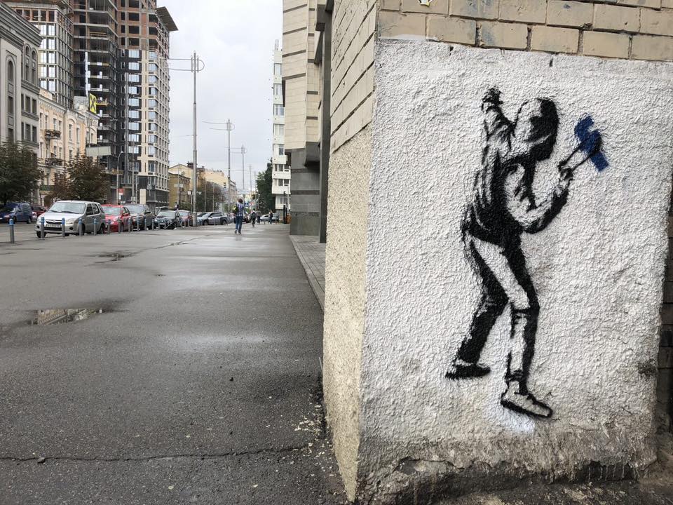 В ночь на 27 июля в Киеве на улице Набережно-Крещатицкая появилось граффити с подписью всемирно известного художника Бэнкси.