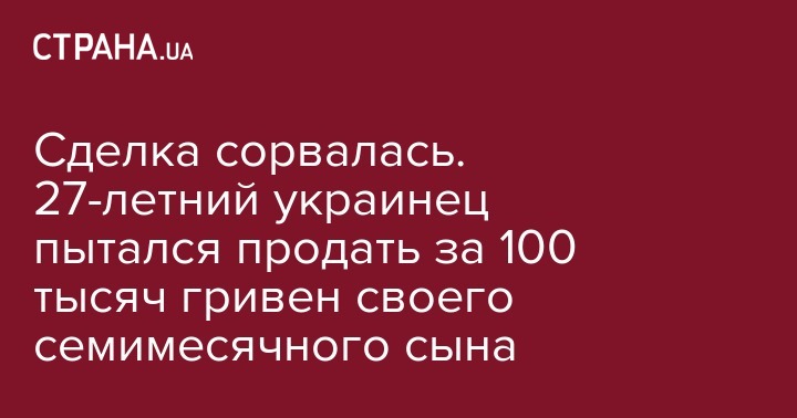 Сделка сорвалась. 27-летний украинец пытался продать за 100 тысяч гривен своего семимесячного сына
