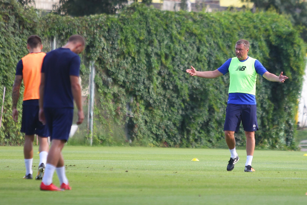 После разминки начались игровые и тактические упражнения. Одержав три победы в трех стартовых матчах сезона без единого пропущенного мяча, "бело-синие" подходят к "украинскому классико" в отличном настроении и с уверенностью в собственных силах.