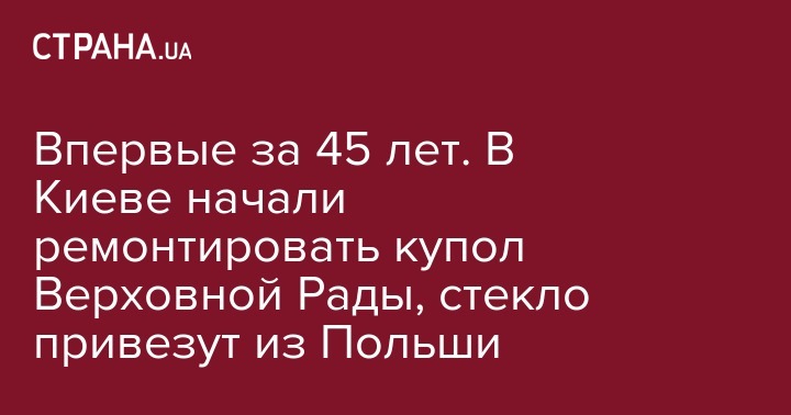 Впервые за 45 лет. В Киеве начали ремонтировать купол Верховной Рады, стекло привезут из Польши