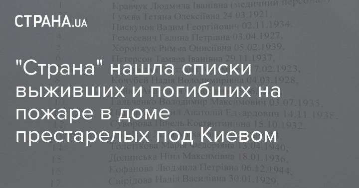 "Страна" нашла списки выживших и погибших на пожаре в доме престарелых под Киевом