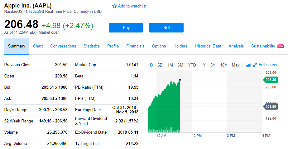 Сейчас финансовые сервисы Google и Yahoo! оценивают общую стоимость компании в 956 и 958 миллиардов долларов соответственно.