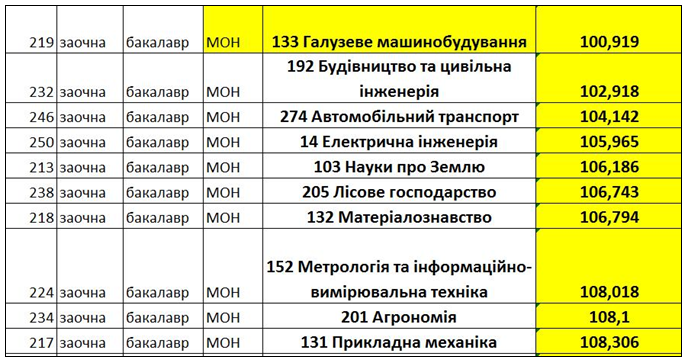 На заочной форме обучения дела обстоят еще "лучше". Для поступающих на специальность "Отраслевое машиностроение" понадобилось всего 100,9 общих балла. "Строительство и общественная инженерия" - 102,9. "Автомобильный транспорт" - 104,1.